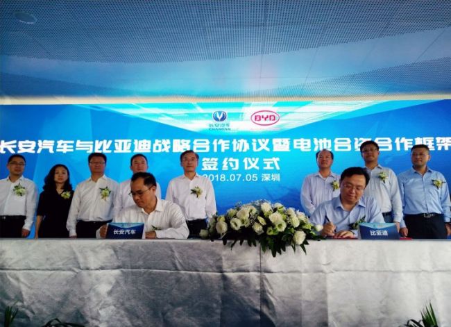 2018年7月5日消息,今天,长安汽车与比亚迪正式签署战略合作协议暨电池合资合作框架协议。针对新能源、智能化、海外市场、共享出行等领域进行合作。