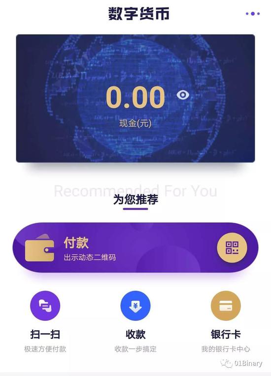 操作界面的功能设置比较简单,目前仅能显示钱包余额、收付款以及绑定银行卡。这些都是我们目前在线下消费时能用到的最基本功能,如果大家非常熟悉支付宝和微信支付的使用方法,那么使用这款数字货币钱包是不存在额外学习成本的。