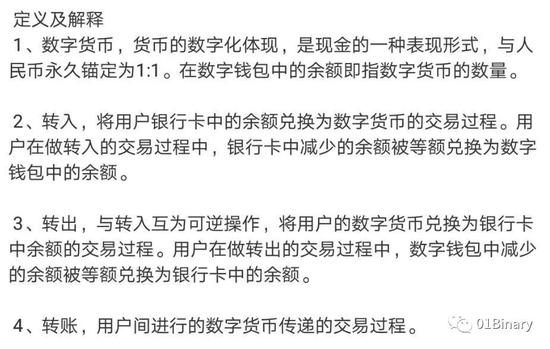 其次,服务协议对数字货币作了一个明确的定义:数字货币是“货币的数字化体现,是现金的一种表现形式,与人民币永久锚定为1:1。在数字钱包中的余额即指数字货币的数量。”因此数字货币钱包内资金的转入和转出与绑定的银行账户实行等额兑换,这样对用户来讲,钱包内余额的数字货币特征并不明显,只有当看到自己的钱包地址后才能真切地感受到这是一款基于区块链技术的数字货币钱包应用。此外,零壹财经·Binary在尝试做数字货币转出至银行卡账户操作的时候发现这一操作并不是实时到账的,而是一种T+1的交易。